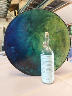 Naar aanleiding van deze expositie heeft woordkunstenaar Marijke Karten-Pels uit Krommenie een gedicht als Flessenpost voor deze deelnemende drum geschreven.