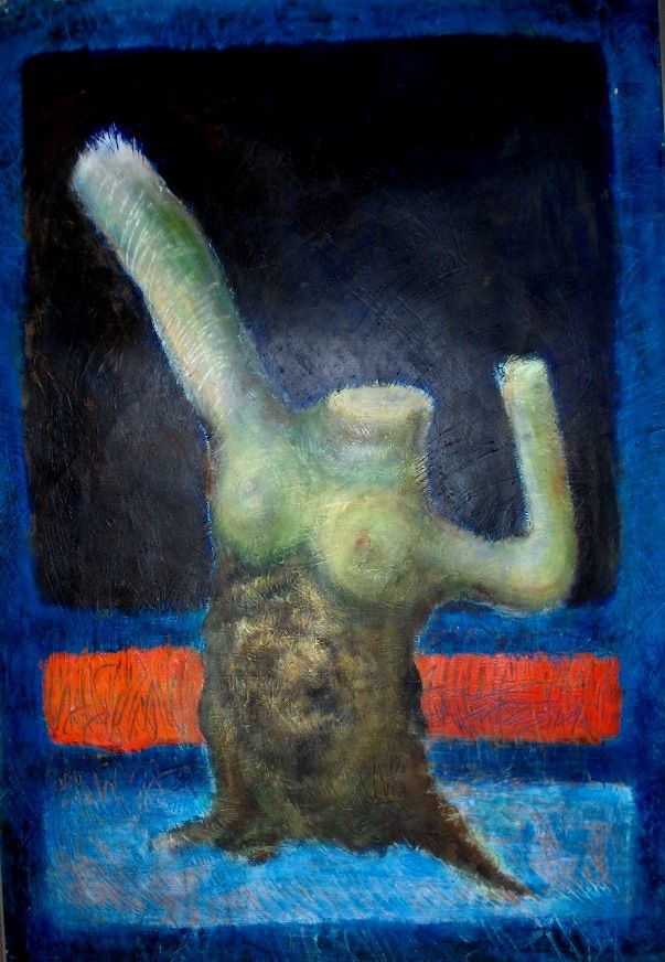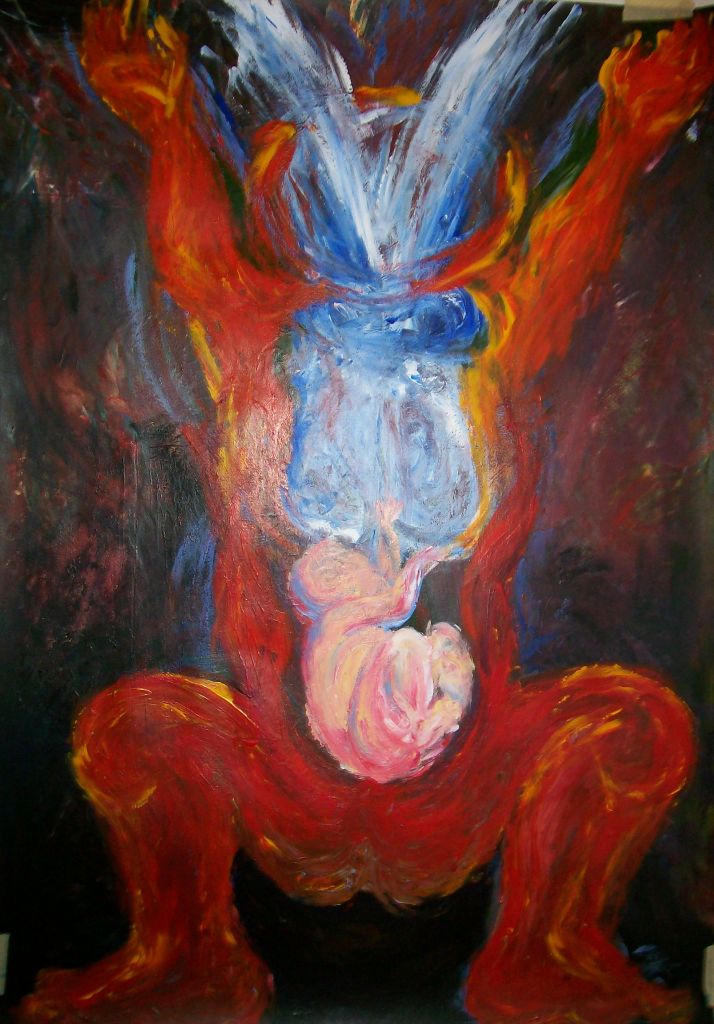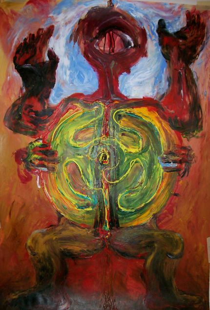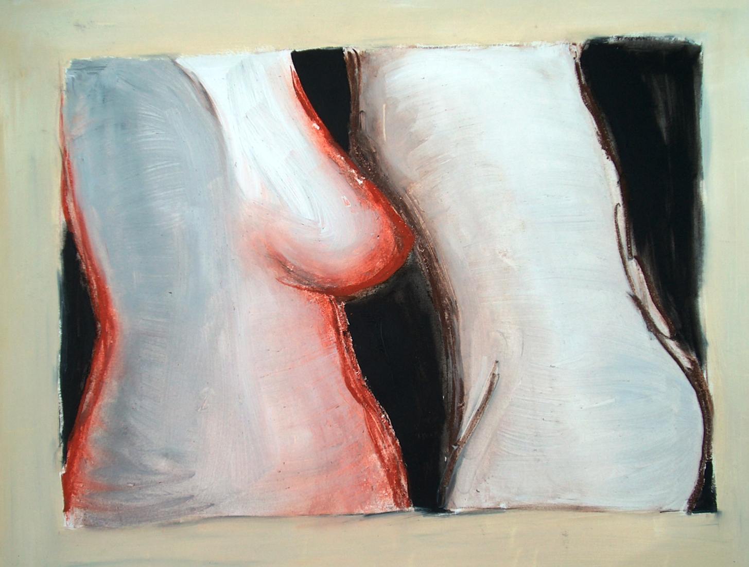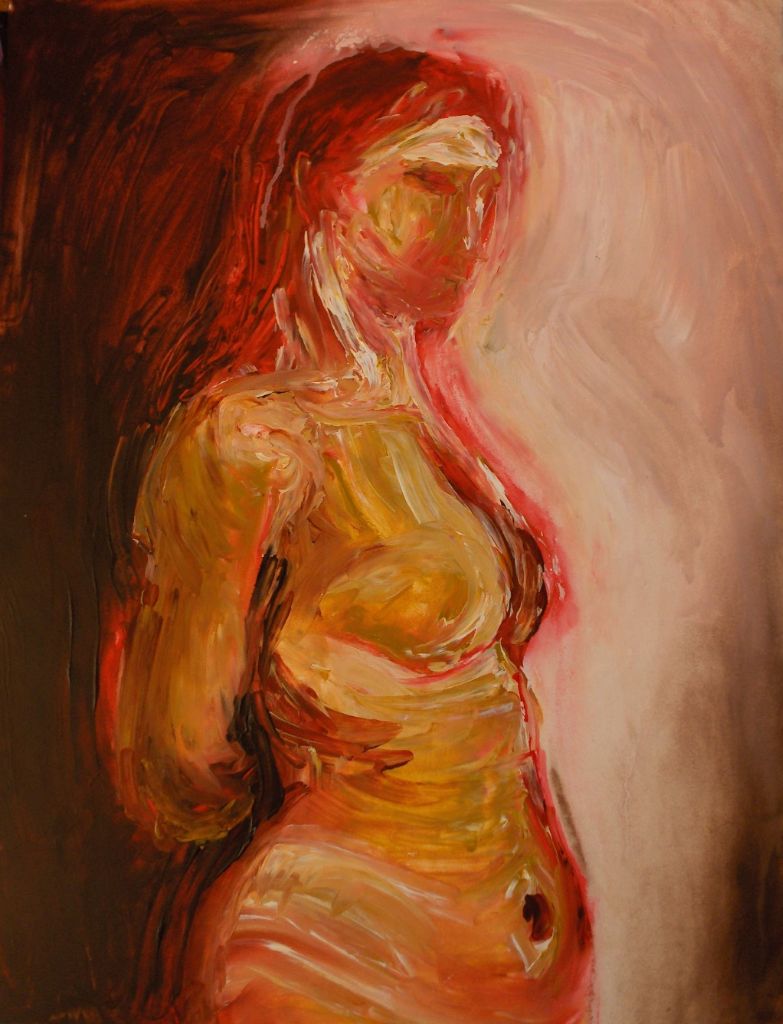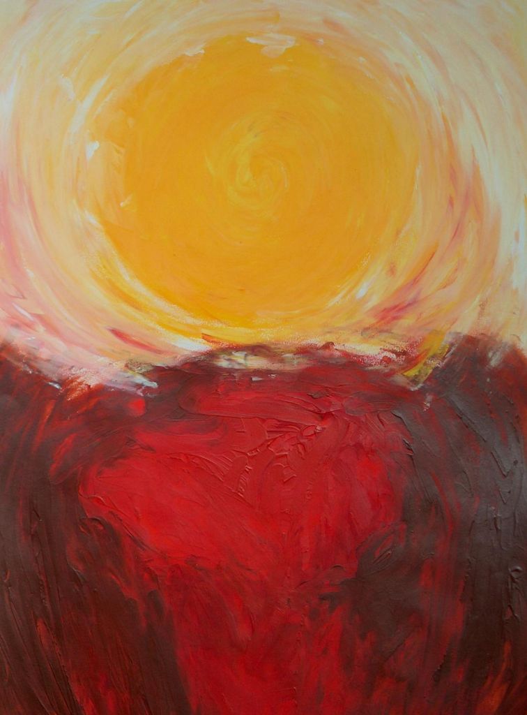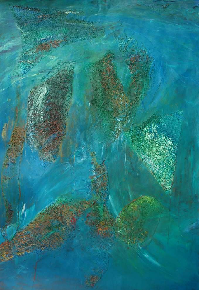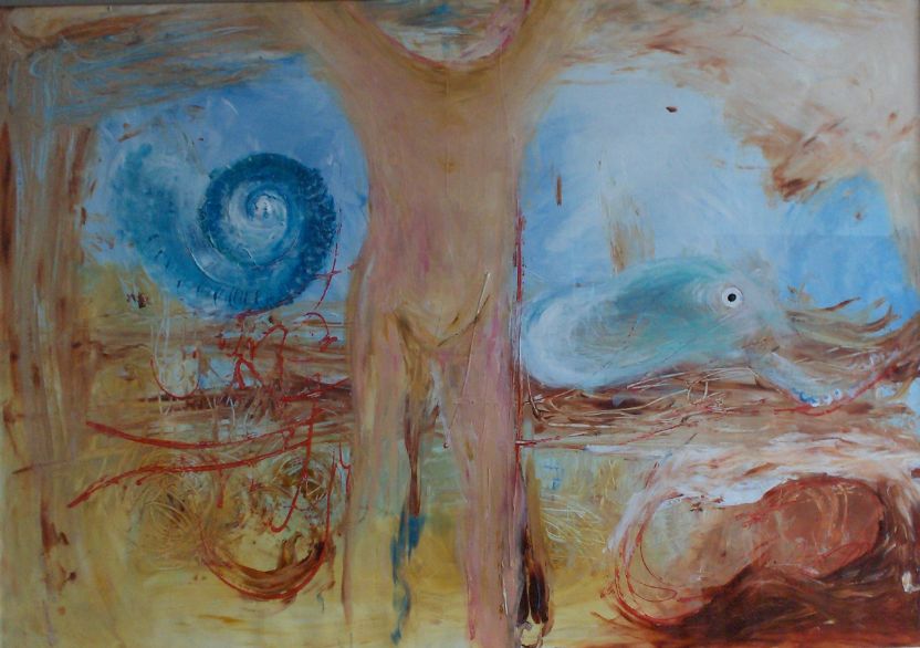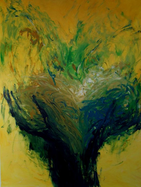 Acrylverf, tot mijn veertigste had ik er nog nooit mee geschilderd, vervlochten met aquarelverf als ik was. En toch had ik het nodig voor een volgende ronde in mijn schildersleven. Vijf jaartrainingen volgde ik bij Michiel Dhont, en ook nog verschillende retraites om langer aan een stuk door te kunnen schilderen. Daar ontdekte ik hoe ik in gesprek kon komen met mijn schilderijen. In heel wat beelden kan ik mijn innerlijk proces aflezen. Hier ontwikkelde ik alles, raakte los van pieterkwastjes, en leerde ik schilderen vanuit de beweging en de impuls.